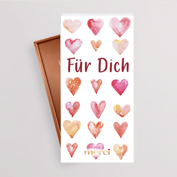 Feine 25-g-Merci-Schokolade mit der Aufschrift „Für Dich“ – eine kleine süße Aufmerksamkeit, die von Herzen kommt.